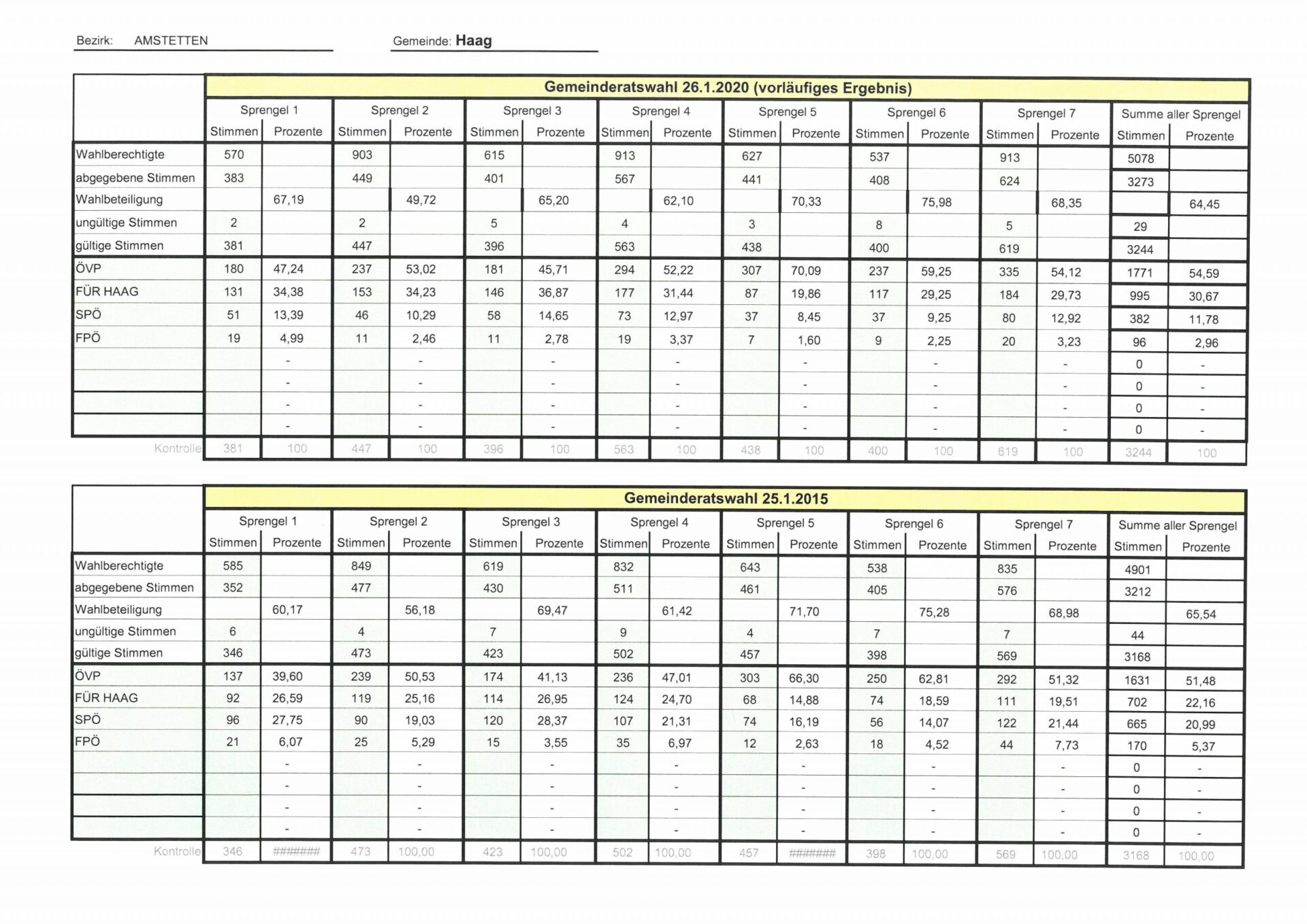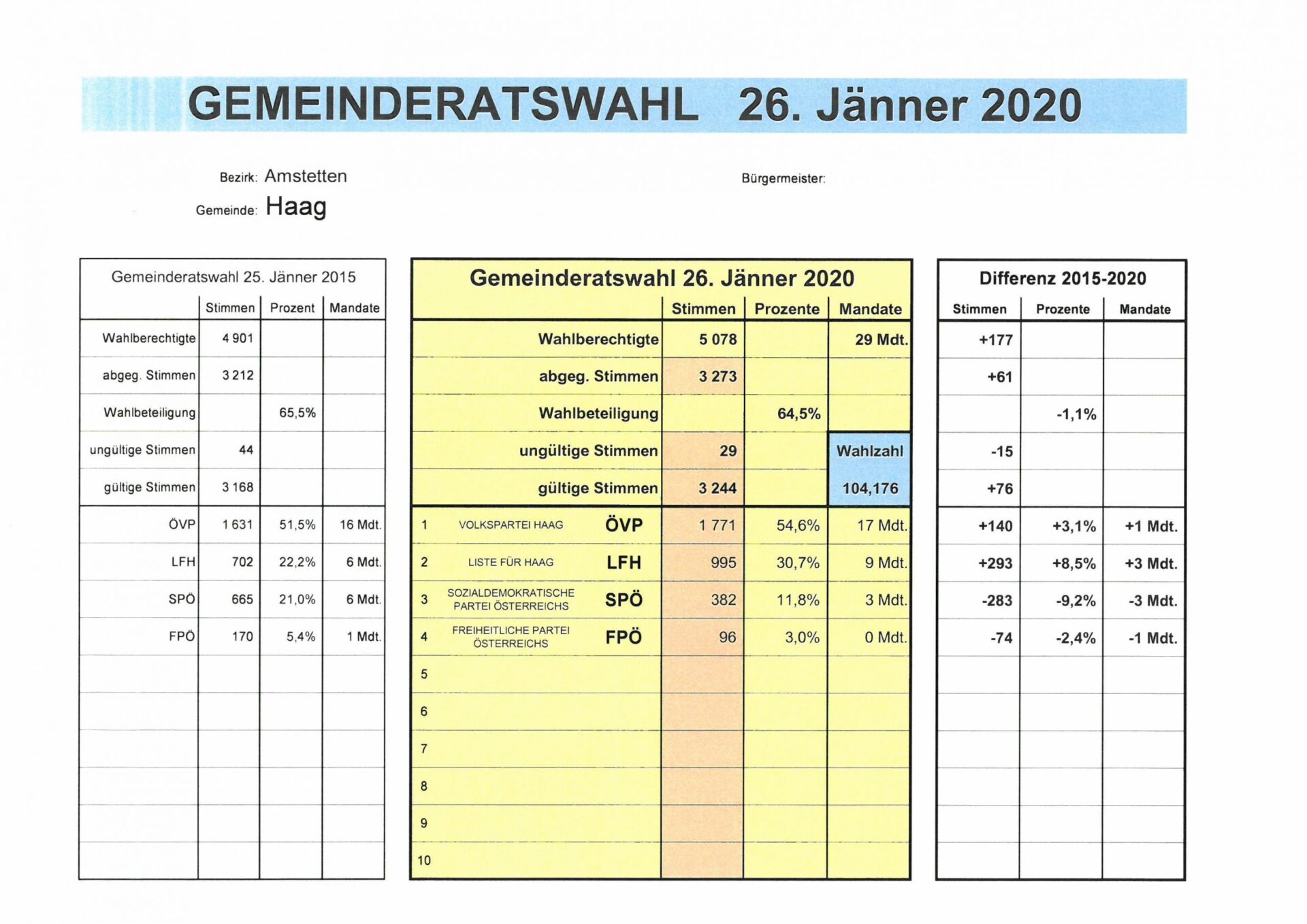 Vorzugsstimmen Ergebnis Gemeinderatswahl 2020 Stadt Haag